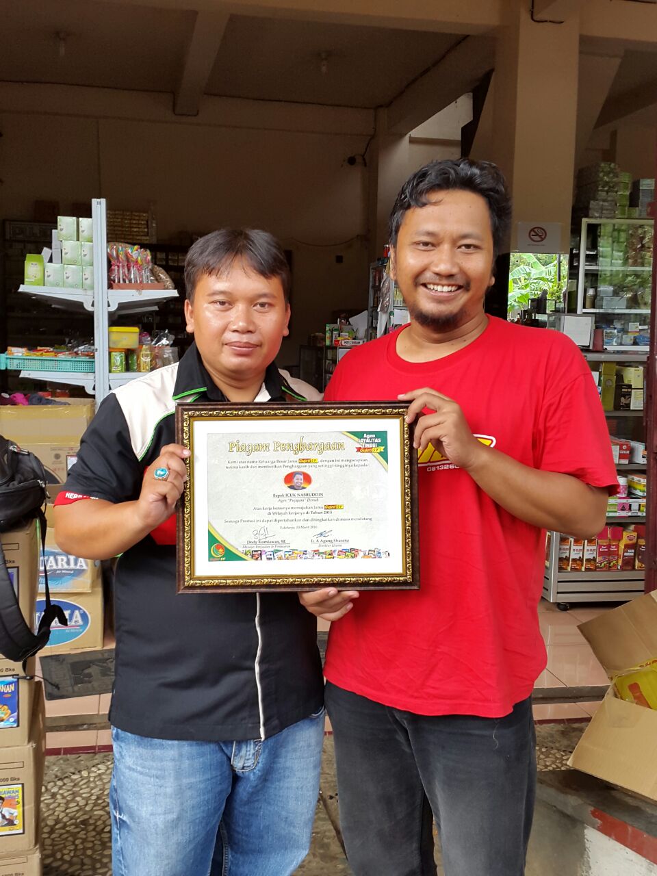 Pak Sakri menyerahkan Piagam Loyalitas Agen kepada Agen Mas Icuk, Toko Pujapara Jepara